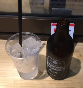 ホッピーセット400円。なかは250円である。このようなプラスチックグラスであるが、これはこれで店の雰囲気的には「あり」。